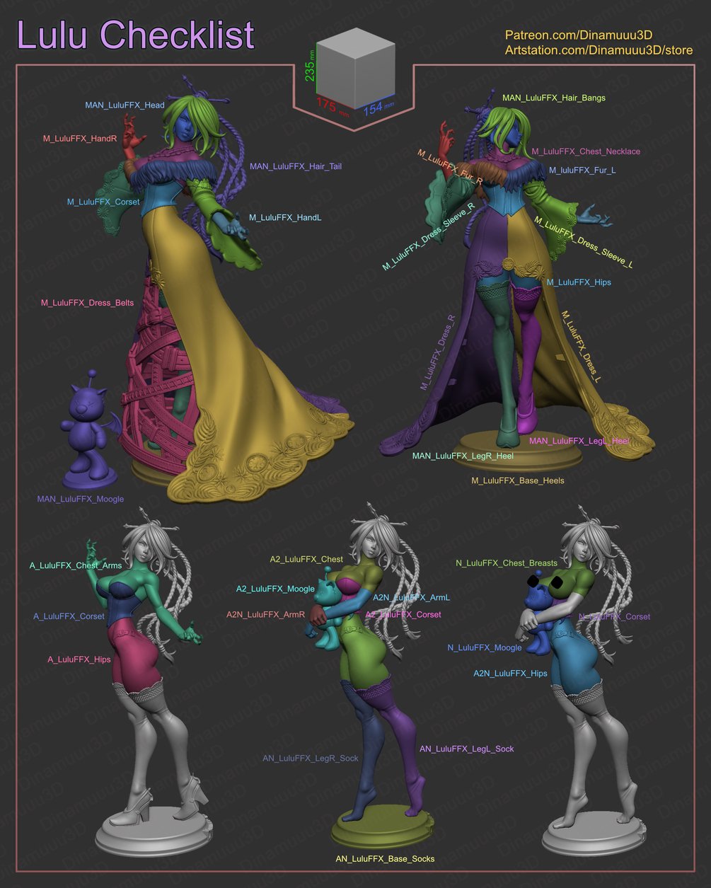 Lulu Final Fantasy X, 3D Print Model STL, Image/Video Renders (Term 12/2025)